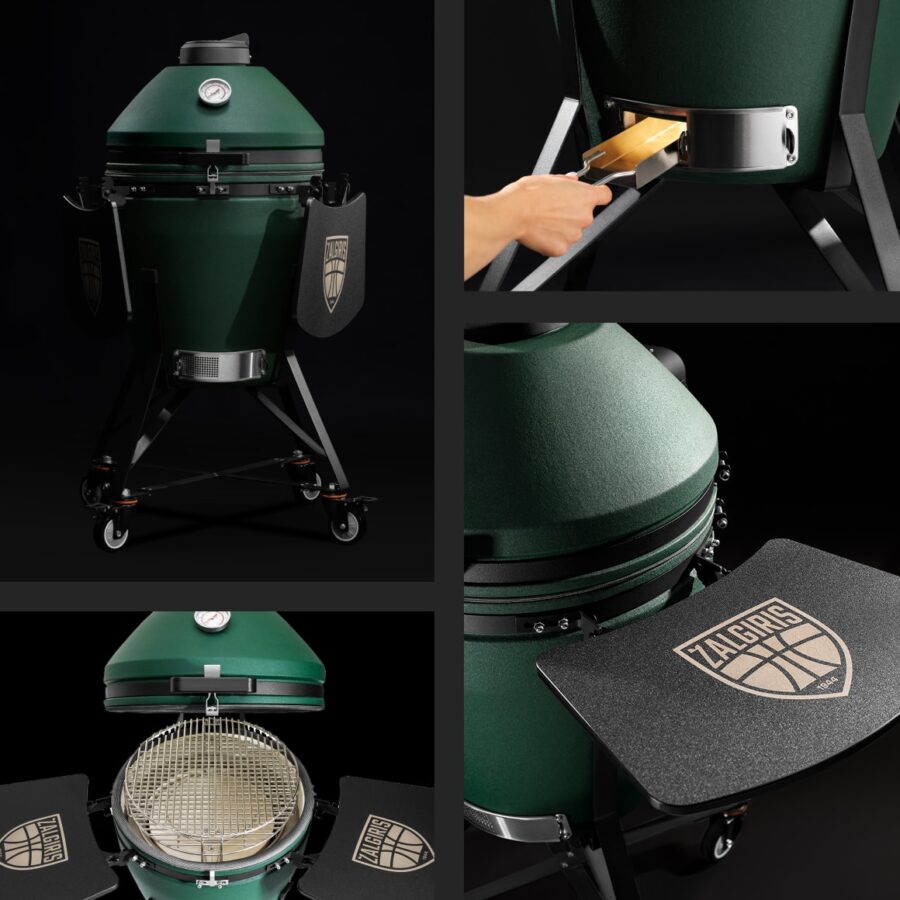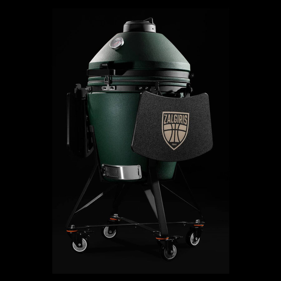 Grill ceramiczny z podstawą na kółkach i półkami bocznymi z logo „Žalgiris”