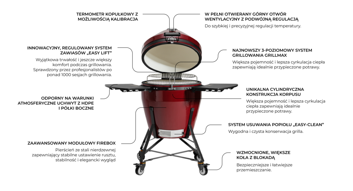 Unikalny design, łatwy w użyciu, stworzony przez miłośników grillowania dla uzyskania najlepszych rezultatów