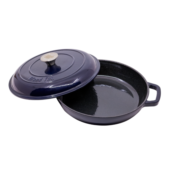 Patelnia żeliwna z pokrywką, niebieska