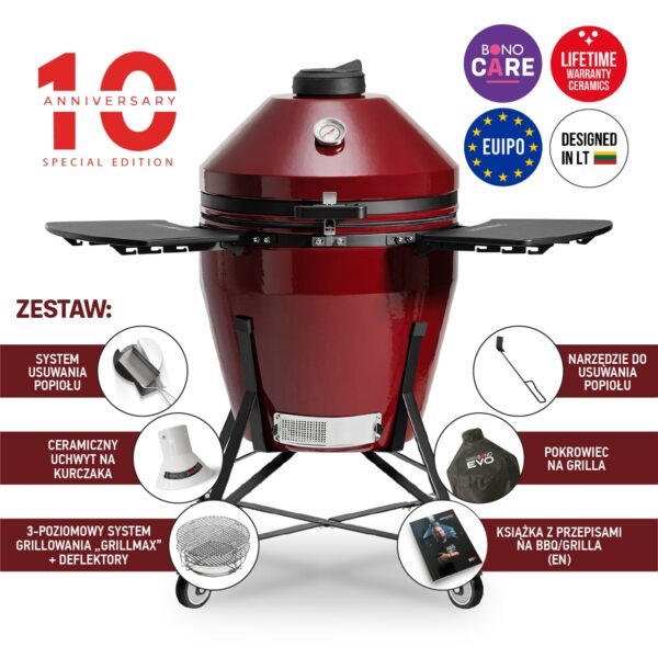 Kamado Bono EVO to nasza najnowsza i najbardziej zaawansowana seria grilli, opracowana przez nagradzany zespół mistrzów grillowania, którzy zdobywają międzynarodowe uznanie podczas mistrzostw BBQ, we ścisłej współpracy z inżynierami high-tech oraz projektantami produktów.